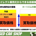 株式会社Car rhythmはお客様から直接お車を買付し、次に乗られるお客様へお届けする『ダイレクト販売』方式を採用しております。一般的な中古車販売店では、中古車の仕入れにオートオークションを経由するため経費がかかってしまいますが、当社ではオークション経費、陸送費などの経費をカットして運営しているため、車を売りたいお客様、買いたいお客様どちらにも還元することができます。